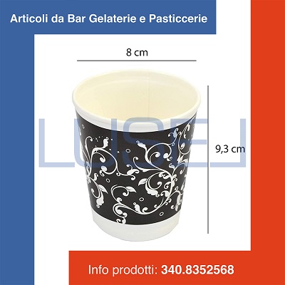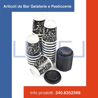 | Imballo: PZ 100 BICCHIERI 280 ML DECORATO IN CARTA + PZ 100 COPERCHIO NER |